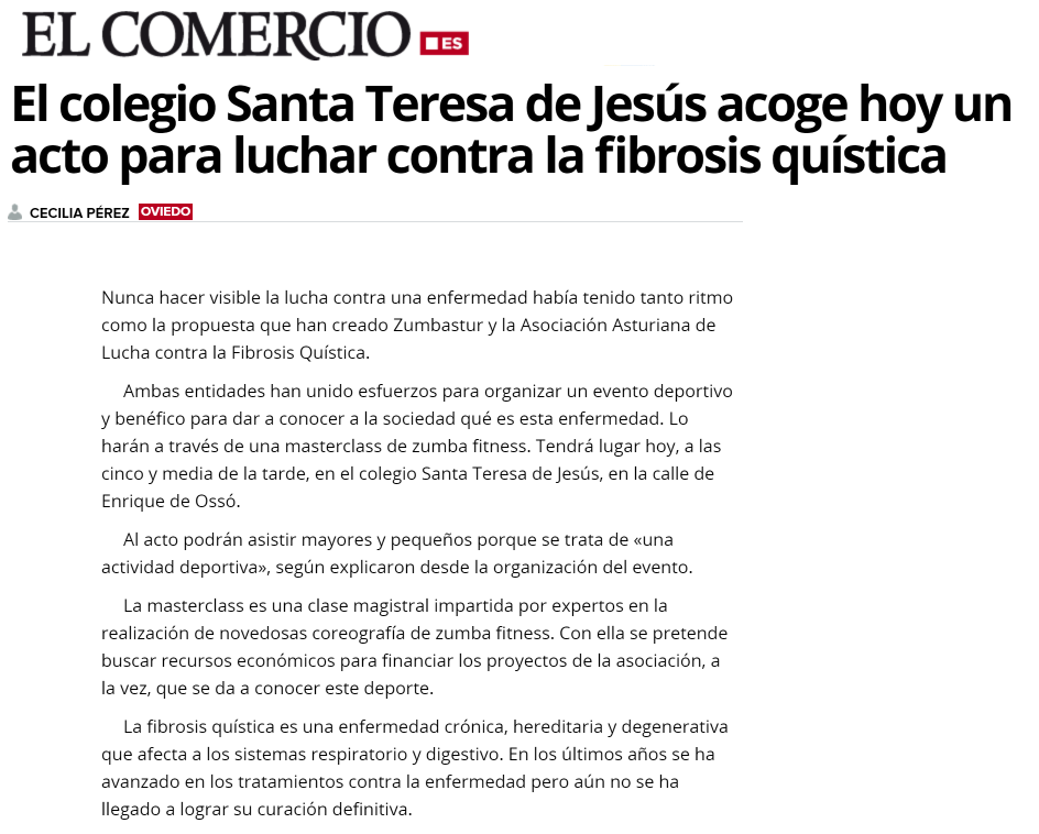 SALIMOS EN LA PRENSA: Zumba contra la fibrosis quística